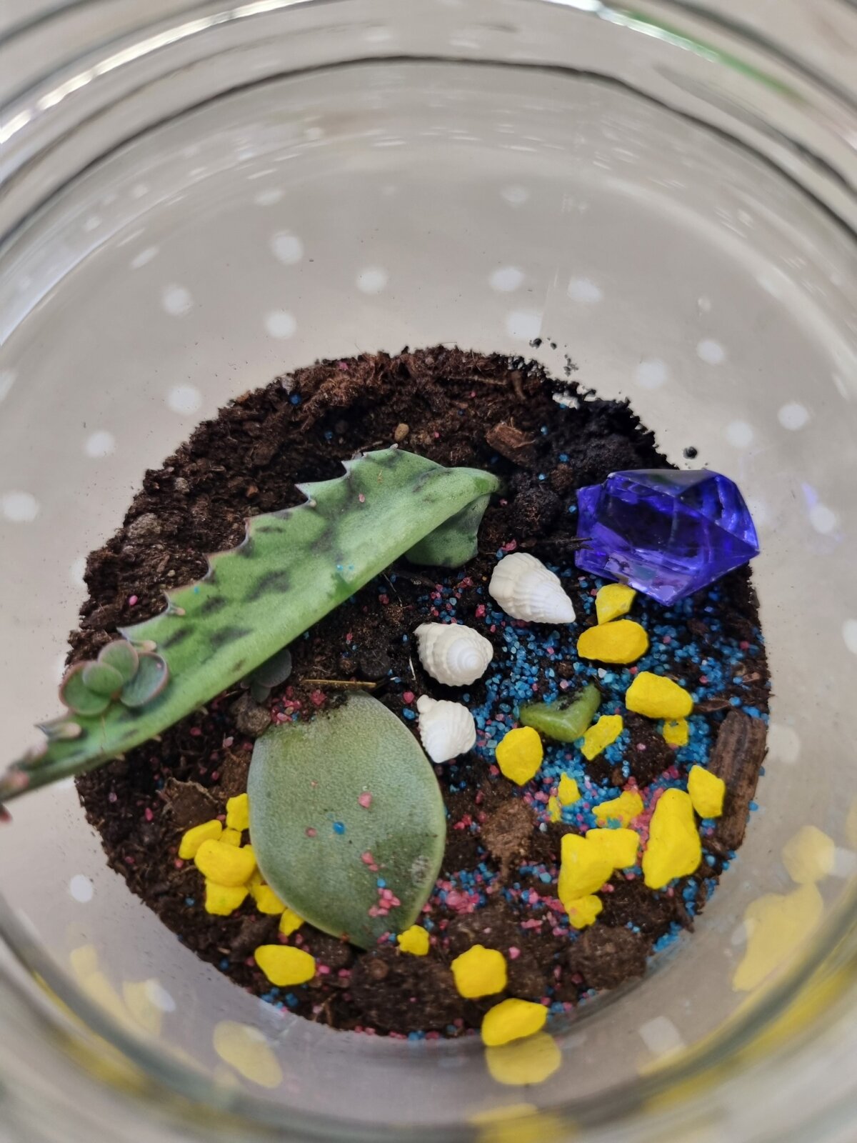 2025-10-02 „Lašelių“ grupės ugdytiniai lankėsi Šiaulių jaunųjų gamtininkų centre, edukacijoje „Florariumas“. Edukacijos metu susipažinome su uždaro augalų ekosistemos kūrimo principais. Sužinojome, kokius augalus galima auginti stiklo induose, kaip jie tarpusavyje sąveikauja, kodėl svarbi drėgmė, šviesa ir dirvožemio sluoksniai. Praktinėje dalyje kiekvienas pasigaminome savo florariumą – nedidelį stiklinį sodą, kurį parsinešėme į darželį. Veikla ugdė kūrybiškumą, atsakomybę, lavino estetinį skonį ir suteikė daugiau žinių apie gamtos pusiausvyrą.