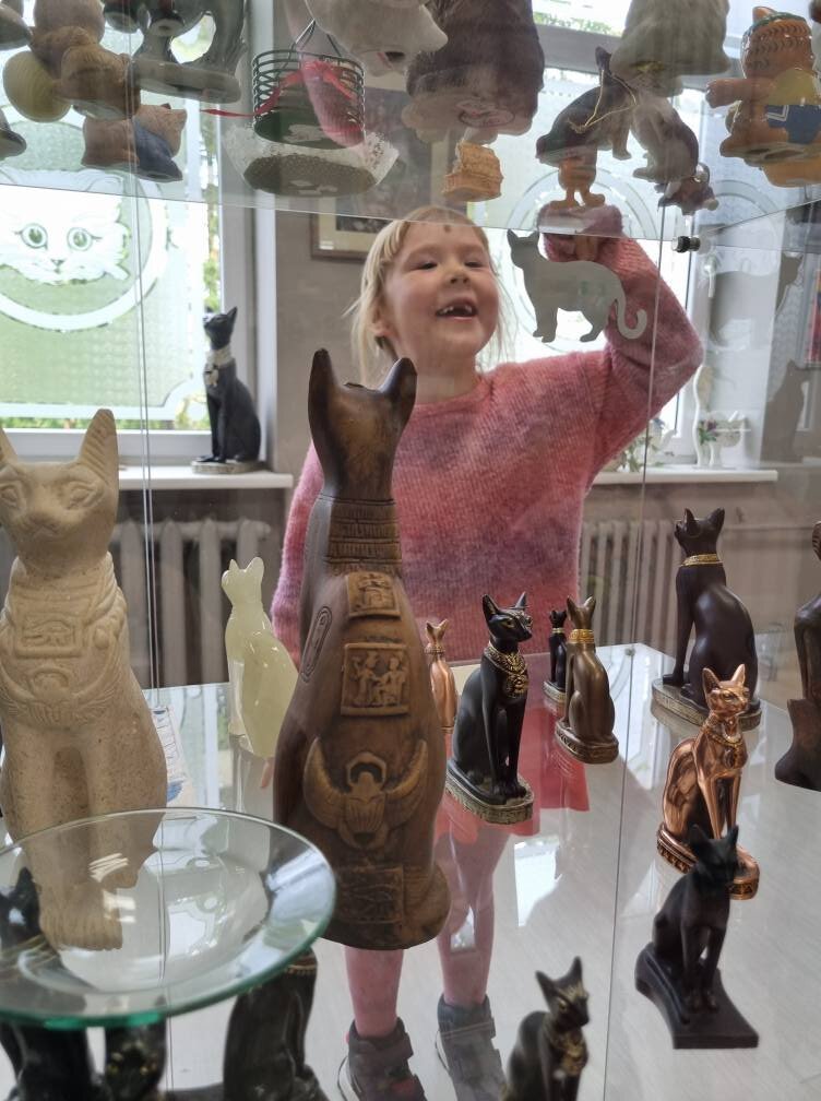 Po edukacijos aplankėme jaunųjų gamtininkų centro gyvąjį kampelį, kuriame susipažinome su įvairiais egzotiniais gyvūnais, o pačiame Katinų muziejuje pamatėme įvairiausių eksponatų, susijusių su katėmis: paveikslų, skulptūrėlių, pašto ženklų, knygų, suvenyrų ir net gyvų kačių.