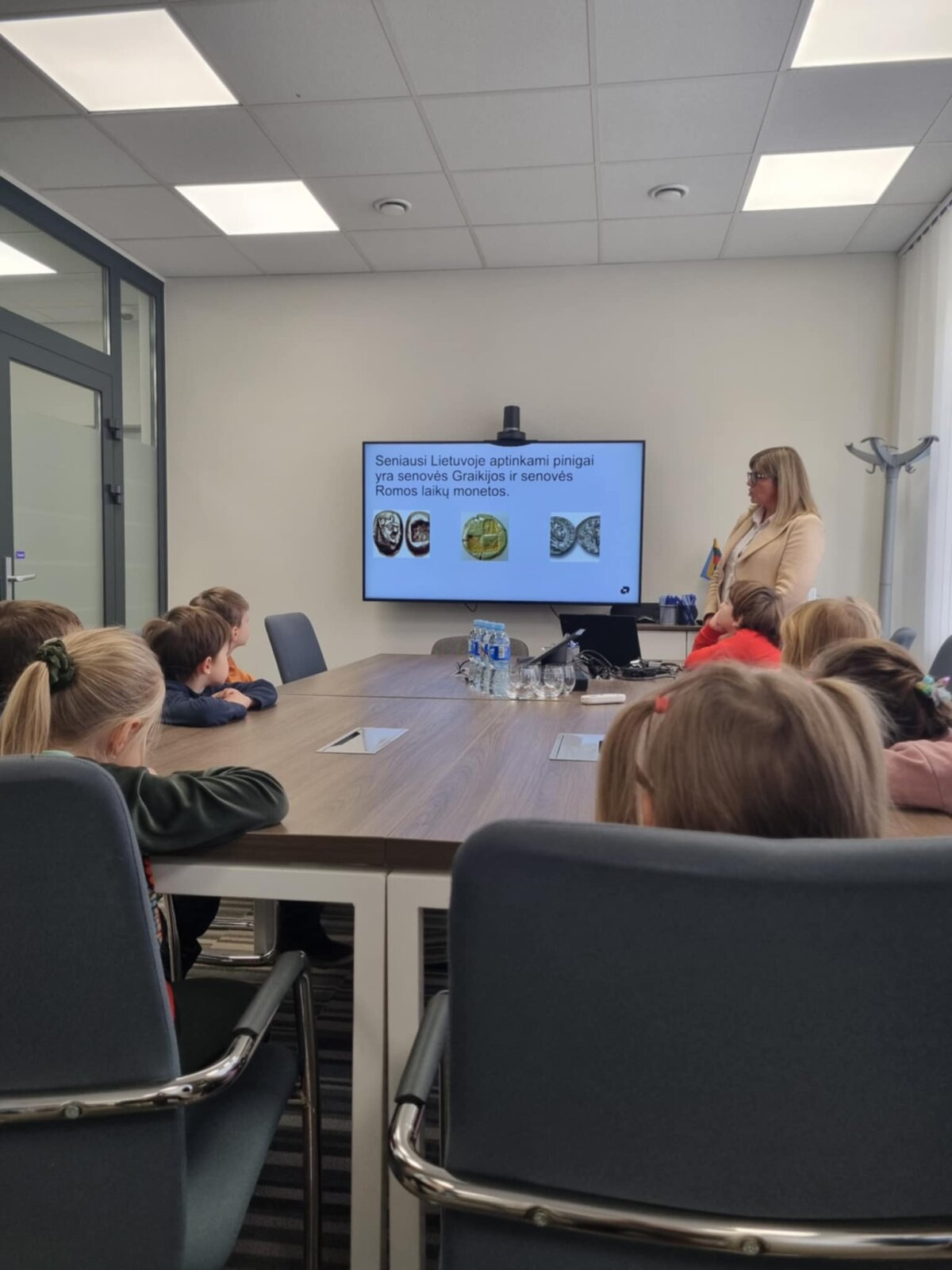 Edukatorė Inga supažindino su seniausiais Lietuvoje aptinkamais pinigais, atkeliavusiais dar iš senovės Graikijos ir Romos laikų. Vaikai galėjo pamatyti šių istorinių monetų pavyzdžius ir sužinojo, kokie pinigai buvo naudojami prieš daugybę metų.