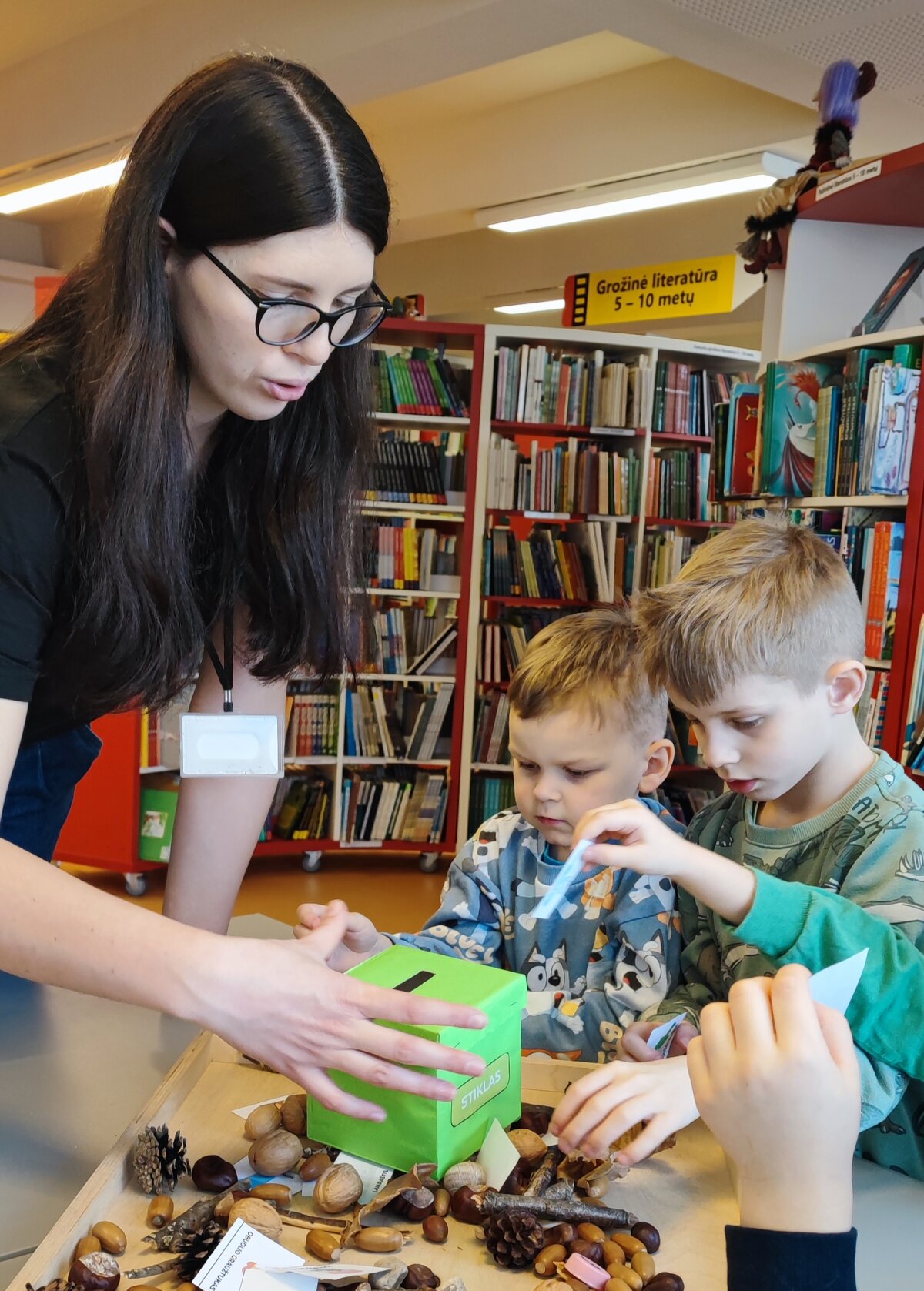 "Vėžliukų" grupės kelionė į biblioteką: sensoriniai skaitymai pagal Evelinos Dac... -