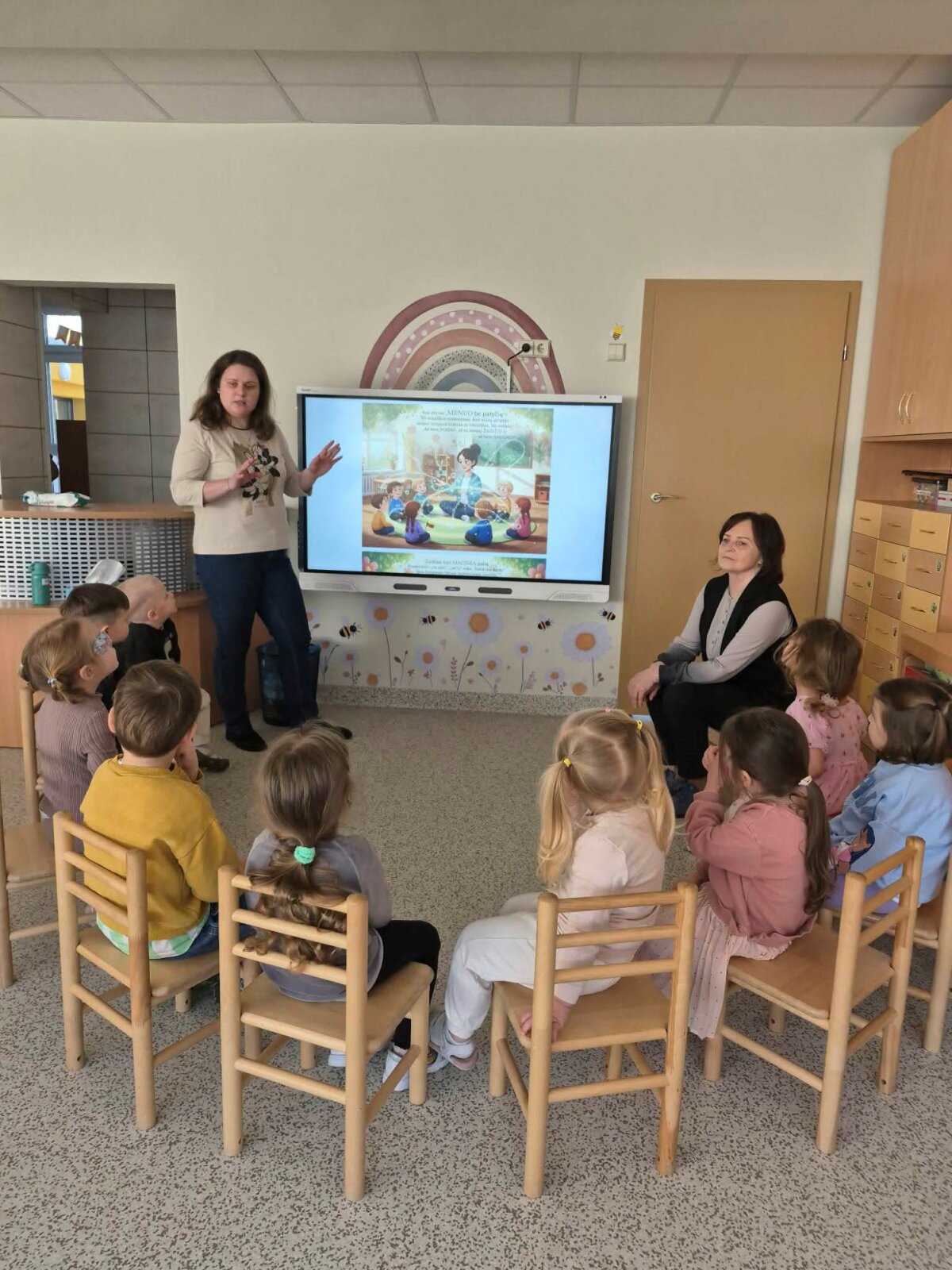 „Žirniukų“ grupės mokytojos Eivyda Kučinskienė ir Giedrė Savickienė kartu su ugd...