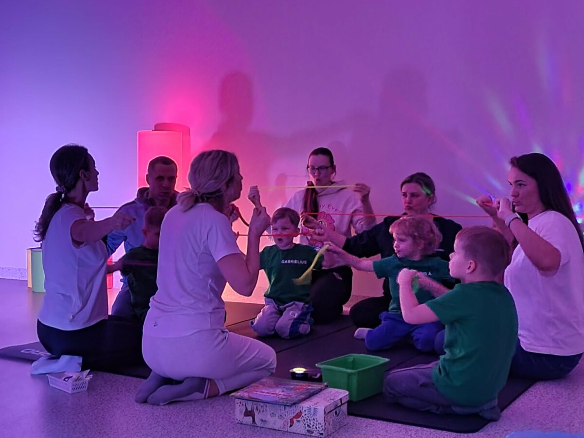Sausio 14 d. judesio korekcijos specialistė Rūta Gedvilienė ir logopedė Eglė Kovėrienė pakvietė vaikus ir jų tėvelius į integruotą veiklą sensoriniame kambaryje „Judu ir kalbu su pasaka“, kurioje kalba, judesys, vaizduotė ir emocijos susiliejo į vaikų ir tėvų bendrą patirtį.